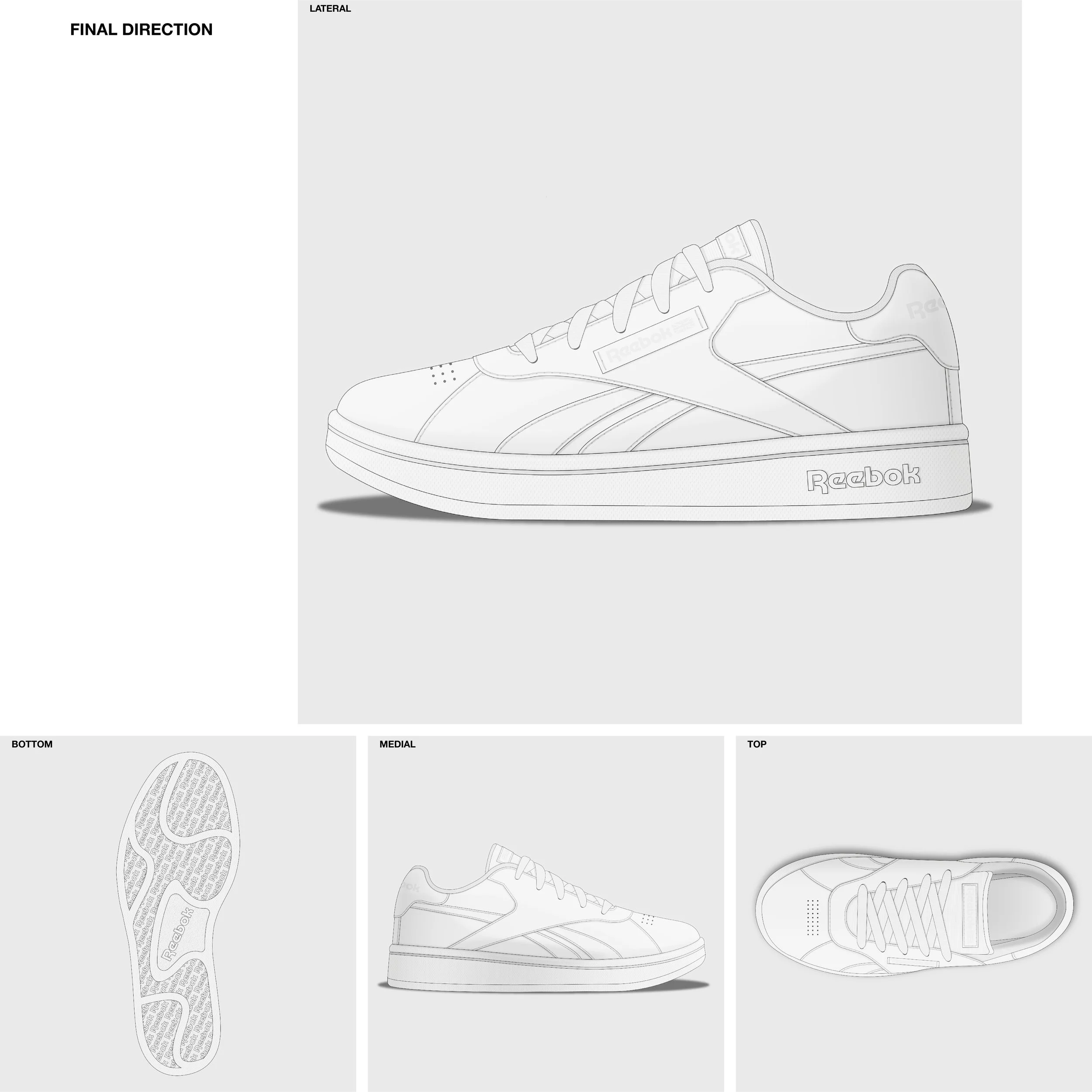 Christopher John Morales footwear design. An accessible Reebok court sneaker to be worn effortlessly for the active pre-teen consumer.